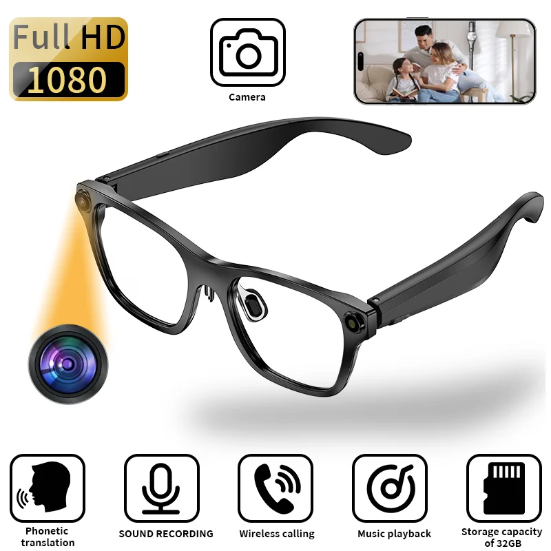 AI Smart Glasses With Camera Bluetooth Call Voice Assistant Control Navigation Waterproof Smart Sports Wearable Camera Glasses