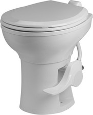 High Profile RV Toilet with Enamel Bowl & Pedal Flush for Travel Trailers
