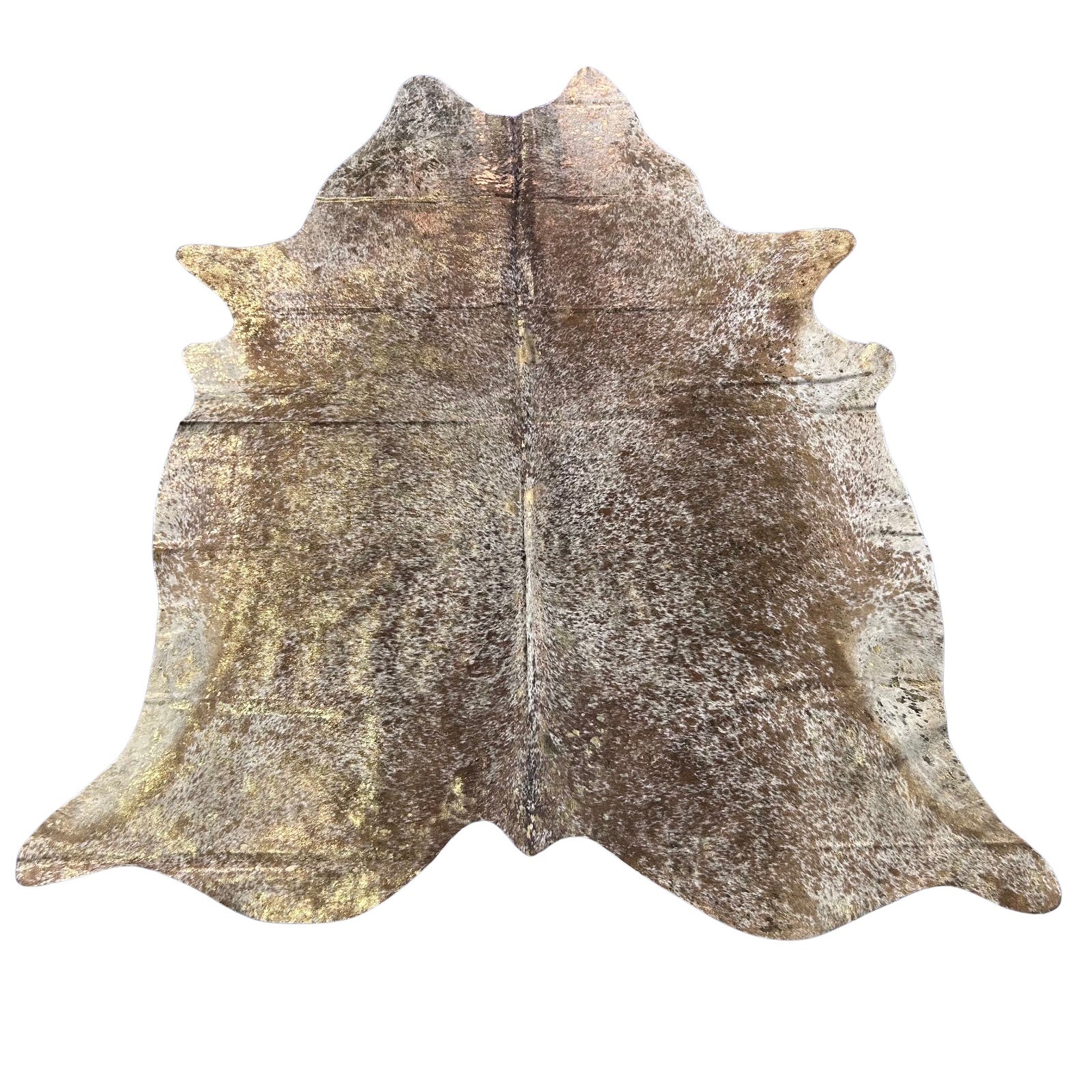 Salt & Pepper Brown and White Cowhide Rug with Gold Metallic Acid Washed Size: 7x6 feet Y-058.
