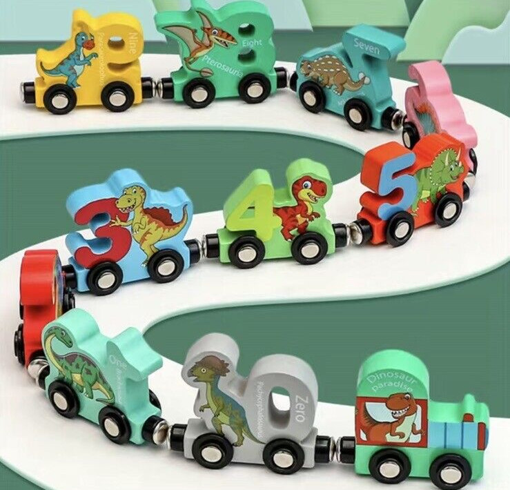 Explore the prehistoric world with this 11PCS Dinosaur Train Toy Set. Made with high-quality wood and featuring a magnetic train design, this set is perfect for children aged 3 years and up. Kids can learn about numbers and counting while playing with their favorite dinosaurs.