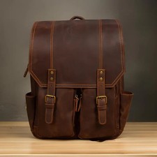 Caramel Full-Grain Leather Laptop Backpack - 15.6" for Work & Travel