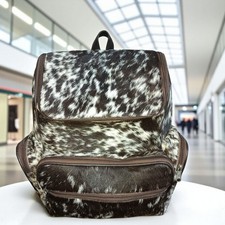 Genuine Cowhide Leather Backpack Brown & White Handmade Hair-On Travel Bag