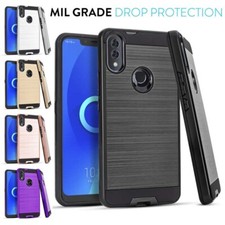 For Alcatel 3V 2019/5032 Shockproof Metal Brushed Hybrid Case + Screen Protector