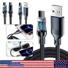 120w Super Fast USB Type-C Charging Braid Phone Charger Lead with Display LOT