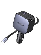 UGREEN 60W Car Charger: Retractable cable, 3-Port Fast Charger 30W PD USB-C & A