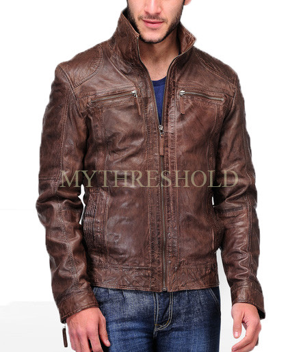 Mens Biker Vintage Motorcycle Distressed Brown Cafe Racer Leather Jacket