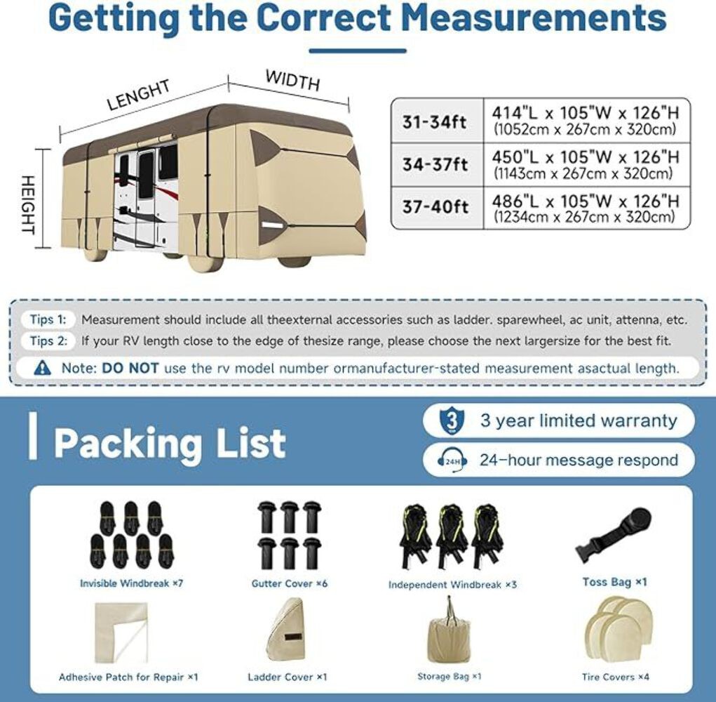 Class A RV Cover, 2025 Upgraded Heavy Duty 7 Layers Top 3 Layers Side Windproof