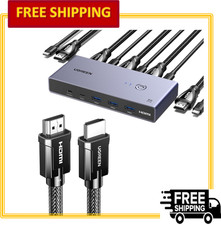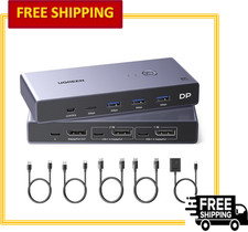 Transform your workstation into a command center with the UGREEN 8K Dual-Monitor DisplayPort KVM Switch. Experience unparalleled efficiency with stunning 8K visuals and a clutter-free desk. Say goodbye to desk clutter and tangled cables.