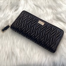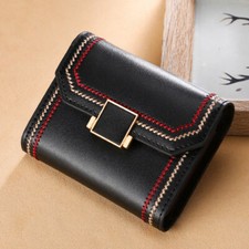New Black Solid Leather Accordion Wallet Zip Around ID Credit Card Case Holder
