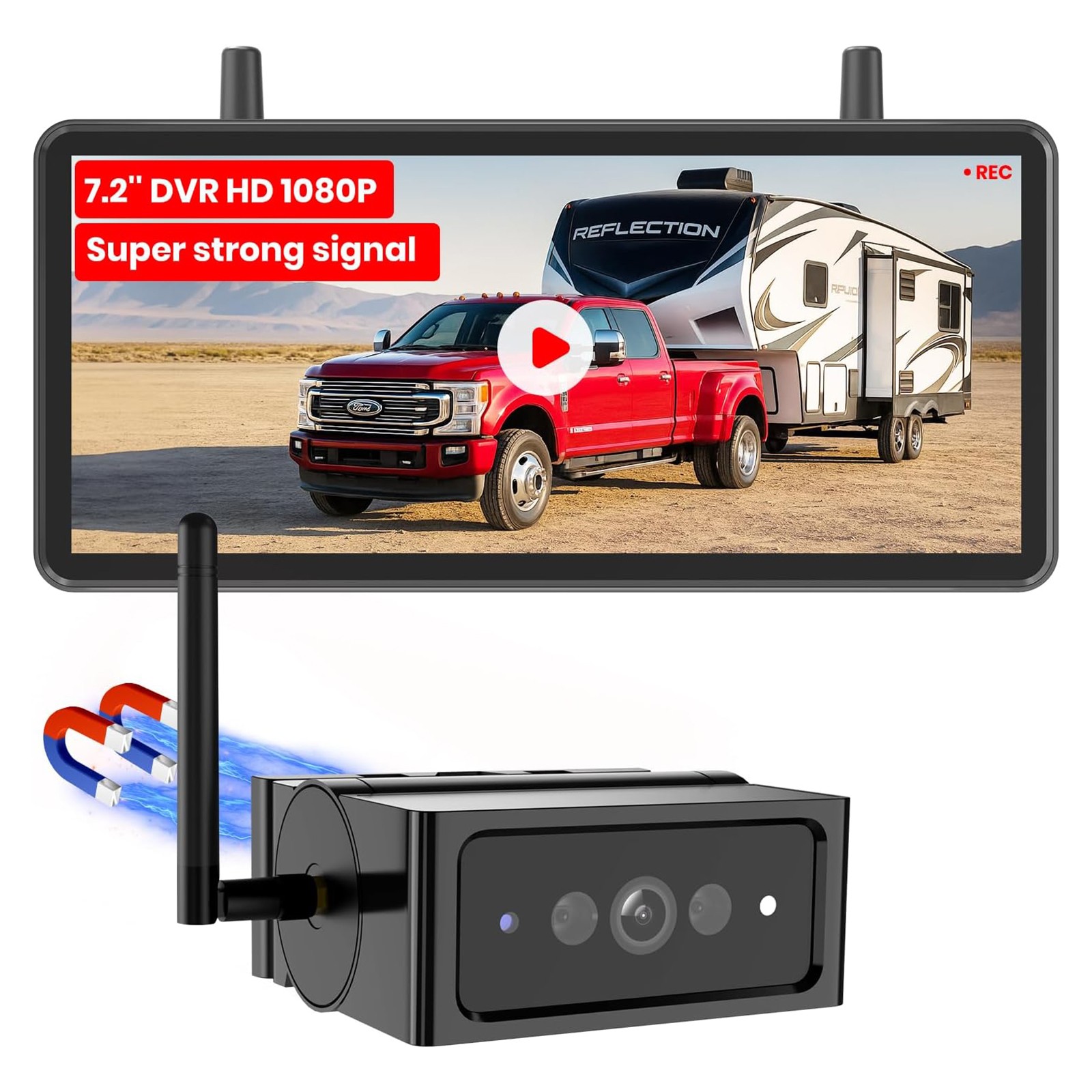 AUTO-VOX Wireless Magnetic Backup Camera 7.2" HD 1080P Split-Screen DVR Monitor