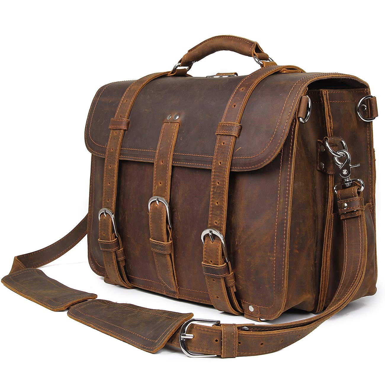 Polare Thick Full Grain Leather 16'' Briefcase Shoulder Messenger Bag For Men Fi