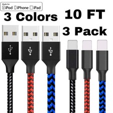 3 Pack For iPhone 14 13 12 11 XS XR 8 7 6 Phone Charger Adapter Cable Cord 10FT