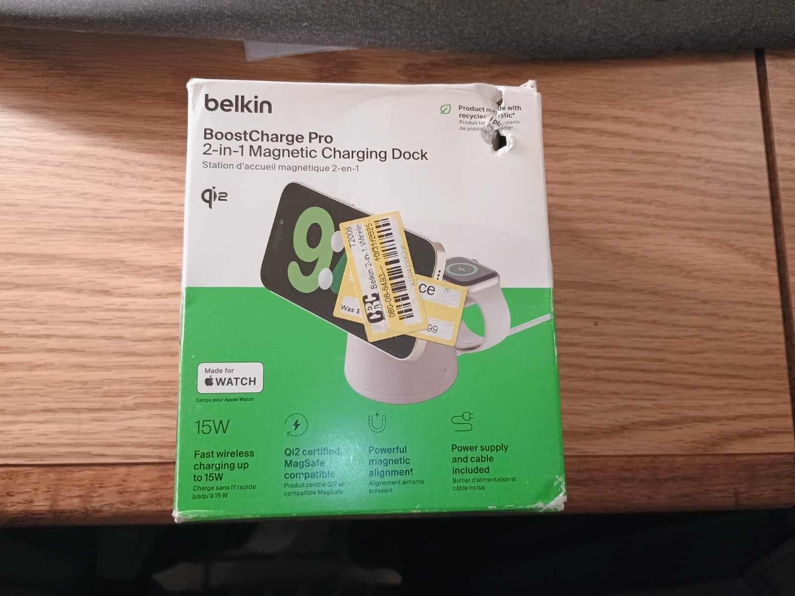 Belkin BoostCharge Pro 2-in-1 Wireless Charging Dock w/ MagSafe 15W - New Sealed