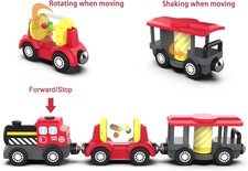 The electric train and carriage are connected magnetically. You will find endless ways to play with these motorized trains in wooden railway. AAA battery is required (not included). Carring goods or wood from one place to another, you will find the shaking carriage when it's going forward.