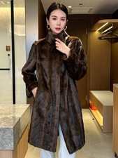 Winter Luxury New Women's Mink Fur Coat Long Sleeve Mid Long Real Fur Warm Coat