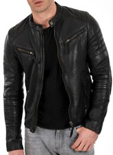 Men’s Black Genuine Leather Jacket – Slim Fit Motorcycle Style | Premium Sheep