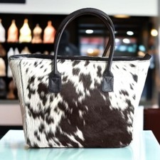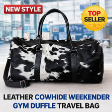 Black & White Handmade Hair‑On Cowhide Leather Weekender Duffel Travel Gym Bag
