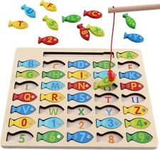 Magnetic Wooden Alphabet Number Toy Trains Set for Kids Toddlers, Number Trains