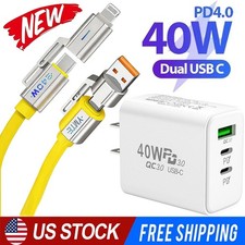 40W USB C Wall Charger 2-Port Block Type C Fast Charging Cube Brick Box PD+QC3.0