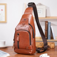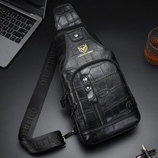 LEBULLBRO Men Sling Backpack Genuine Leather Chest Crossbody Travel Shoulder Bag