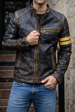 Men’s Motorcycle Biker Vintage Cafe Racer Distressed REAL Leather Jacket For Men