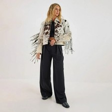 Women’s Western Cowhide Fringe Style Leather Jacket Real Hair-On Leather Jacket