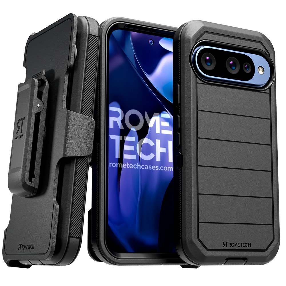 Protective Cases for Pixel 10 Series feature four layers of 360-degree heavy-duty shockproof protection. The defender case is made with a hard polycarbonate inner shell and a soft outer rubber layer.