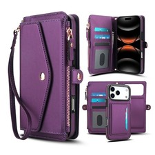 For iPhone 17 16 15 14 Pro Max Women Purse Leather Zipper Detachable Wallet Case