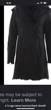 This large long-haired shearling Toscana Black coat is designed to keep you warm while looking effortlessly elegant. Hand-buffed suede feel, leather trim finish details and expert hand-stitching for durability.