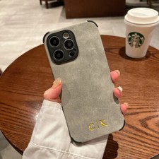 For iPhone 15 14 Plus 13 12 11 Pro Max Customized Initial Lambskin Leather Case