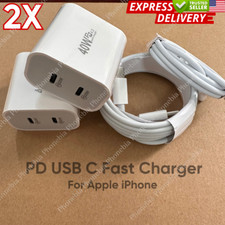 2X For iPhone 16 15 Plus14 13 12 11 iPad Pro USB C 40W Fast Charger Cube PD Cord