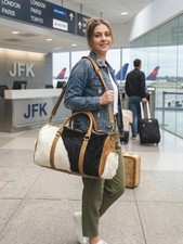 Material: 100% genuine cowhide leather + natural hair-on-hide fur. Handmade in Fez, Morocco. Because every bag is handmade and crafted using natural materials, small variations may appear in the fur pattern, interior leather tone, or stitching details.