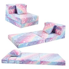 Glow Rainbow Unicorn Tri-fold Sofa Bed for Kids, Foldable Futon Mattress, Cha...