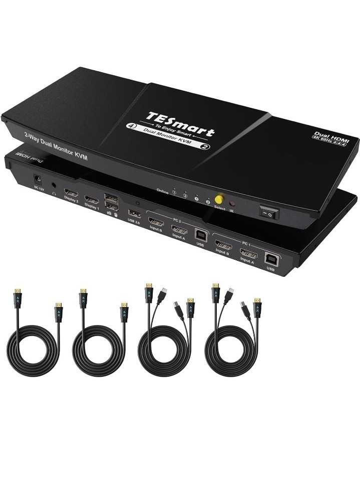 TESmart HDMI KVM Switch 2 Monitors 2 Computers 4K@60Hz, USB 2.0, Dual Monitor KVM Switch HDMI 2 Port Extended Display, EDID emulators, L/R Audio, Hotkey Switch, Button Switch with All Input Cables The box was opened only for taking photos. The item is brand new and has never been used. white 28 N ?