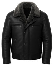 Men’s Black Shearling Leather Jacket B3 RAF Aviator Fur Collar Winter Coat