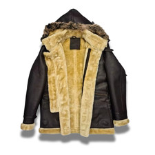 Men's Vintage Black B3 RAF Aviator Coat Warm Fur Genuine Sheep Leather Jacket