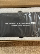2x2 dual monitor KVM switch — HDMI + DisplayPort outputs. - Video: HDMI + DisplayPort (HDMI+DP variant). - Wired remote + push button switching; LED active PC indicator. - 4x USB 3.0 ports — keyboard, mouse, printer, flash drive sharing.
