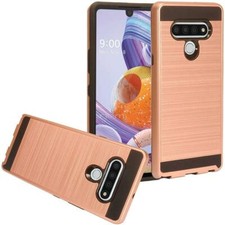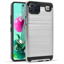 Brushed Metal HYBRID Rubber Case Phone Cover Accessory For LG K51 / Q51 /Reflect