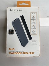 The Hyper -HYPERDRIVE DUO PRO 7-in-2 USB-C Hub in Space Gray is specifically designed for MacBook Pro/Air. It is an adapter with USB 2.0 connector A, offering multiple ports for enhanced connectivity options. Ideal for expanding the capabilities of your MacBook, this hub provides convenience and functionality in a sleek and modern design by Hyper.