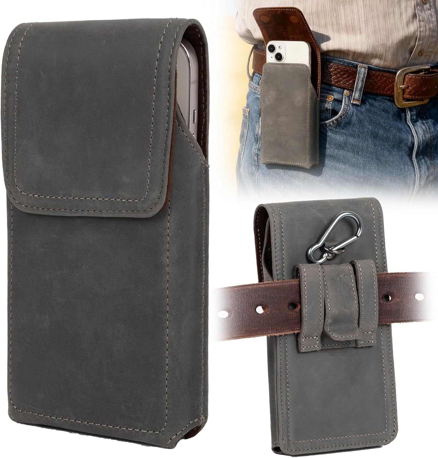 Simple design, with smooth zipper, sturdy and fashionable. Multiple Wearing Options: The phone holster has a hanging ring hook, belt clip and double belt loop. Suitable for construction work, camping, hiking, outdoor-living, cycling and hiking, etc.