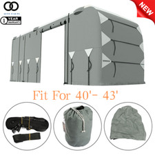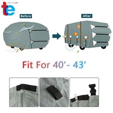 Specification: Color:Gray Applicable Motorhome Size:37'-40' Package Include:1×Motorhome Cover,1×Storage Bag Features: Tearproof: Newly developing mixed Anti-UV composite fabric for top panel,extra-thick,extra strength,rip-stop;Can provide maximum weather and damage protection against harmful UV,rain,snow,dirt,nicks,and scratches. Windproof: The change of position of the middle tension panels on the side effectively increases the stress area and provide 2pcs extra straps to tie the body of your RV. we lead the windproof design of tension panel & windproof straps, and we believe that our innovative spirit and professionalism for rv covers cannot be imitated. .