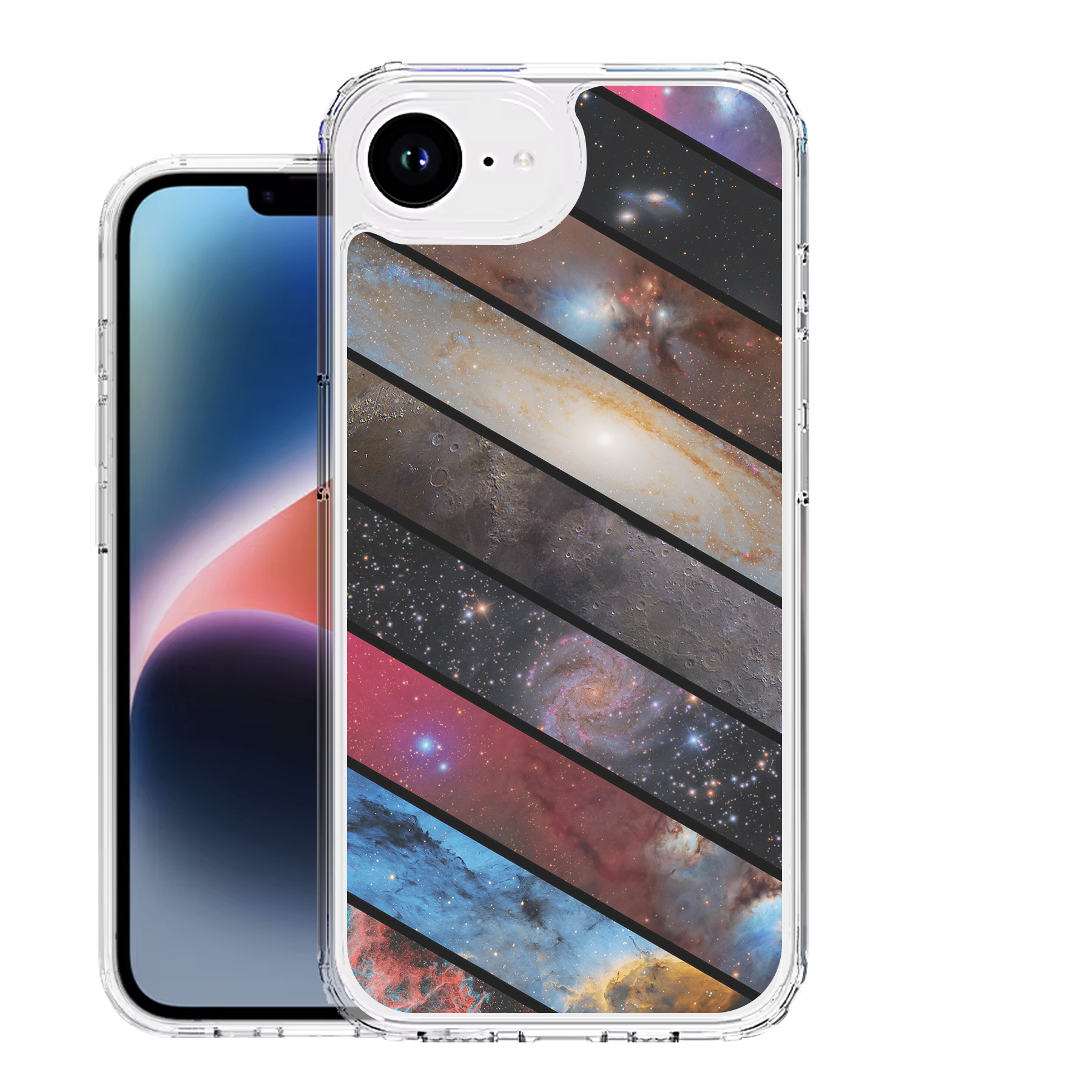 This case features acrystal-clear polycarbonate (PC) back and ashock-absorbent thermoplastic polyurethane (TPU) bumper. The design on the back of the case is not a sticker or a decal; it'sprofessionally printed directly onto the case using advanced UV printing technology.