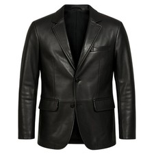 Men's Black Leather Blazer Jacket Genuine Lambskin Formal Coat Two Button Suit