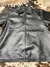 Men’s Black Genuine Lambskin Leather Shirt Short Sleeve Zip Front Slim Fit