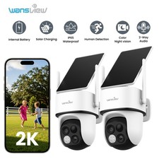 2-Pack Wansview 2K PTZ Solar Security Camera Outdoor 360° Wireless WiFi 64x Zoom