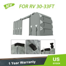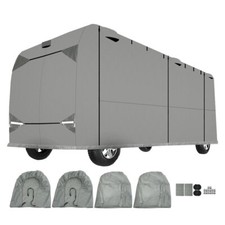 About this item: Material: non-woven fabrics Top Color:Gray Applicable Motorhome Size:30-33FT(396"L*110"W*120"H) Package include: 1 x Motorhome Cover, 1x Storage Bag 【SECURE FIT】 Please measure before purchase, measurement should include the bumper, ladder or spare tire, but not include the hitch! Reinforced elasticized hem corners and adjustable windproof straps & buckles provide a snug fit, make sure the cover fits your RV. 【TEAR PROOF】 .
