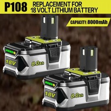 2X 8.0Ah Lithium-ion Battery For RYOBI P108 18V One Plus High Capacity 18V