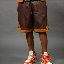 Men's Brown Sheepskin Genuine Leather Shorts Track Style Casual Handmade Luxury
