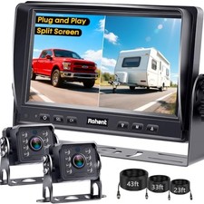 Dual Lens Backup Camera 7" Monitor Splitscreen DVR Dash Cam for Truck Caravan