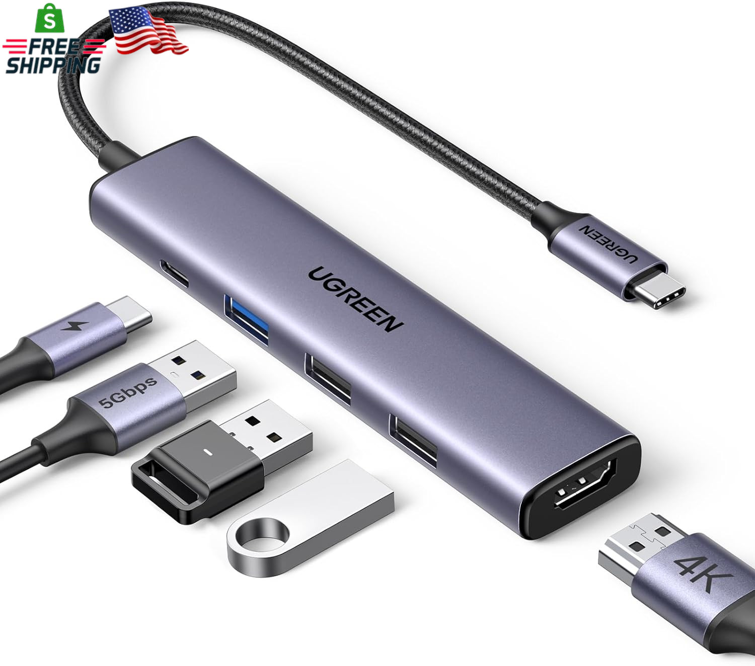 UGREEN USB C Hub 5 in 1 Multiport Adapter Revodok 105 4K HDMI, 100W Power Delive